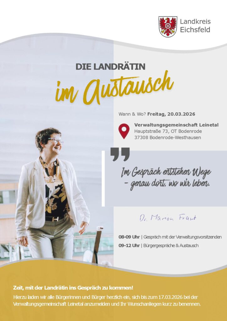 Die Verwaltungsgemeinschaft „Leinetal“ mit ihren Mitgliedsgemeinden Bodenrode-Westhausen, Geisleden, Heuthen, Reinholterode, Steinbach und Wingerode bietet ab sofort einen neuen digitalen Bürgerservice an: